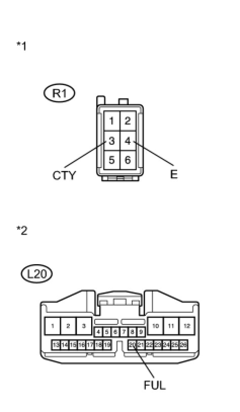 (1) Disconnect the R1 back door lock assembly connector and L20 power back door ECU connector.