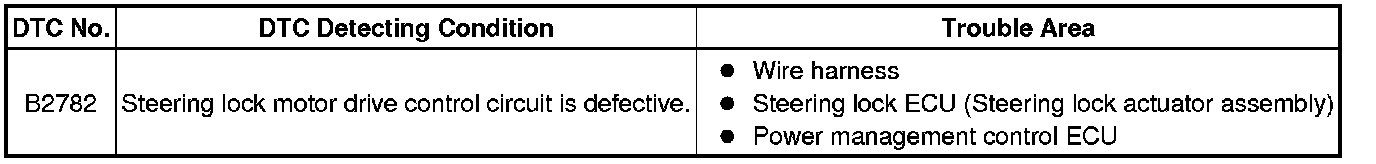 STEERING COLUMN: STEERING LOCK SYSTEM: B2782: Power Source Control ECU Malfunction