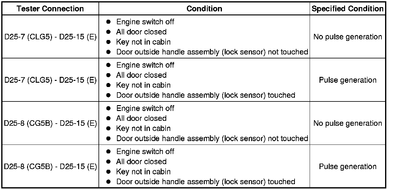 (b) Measure the resistance and check for pulses according to the value(s) in the table below.