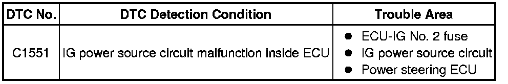 POWER ASSIST SYSTEMS: POWER STEERING SYSTEM: C1551: IG Power Supply Voltage Malfunction