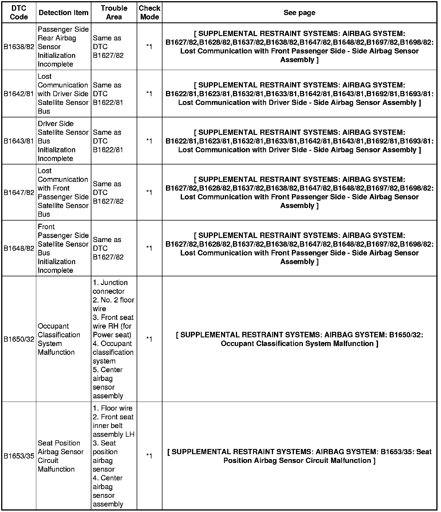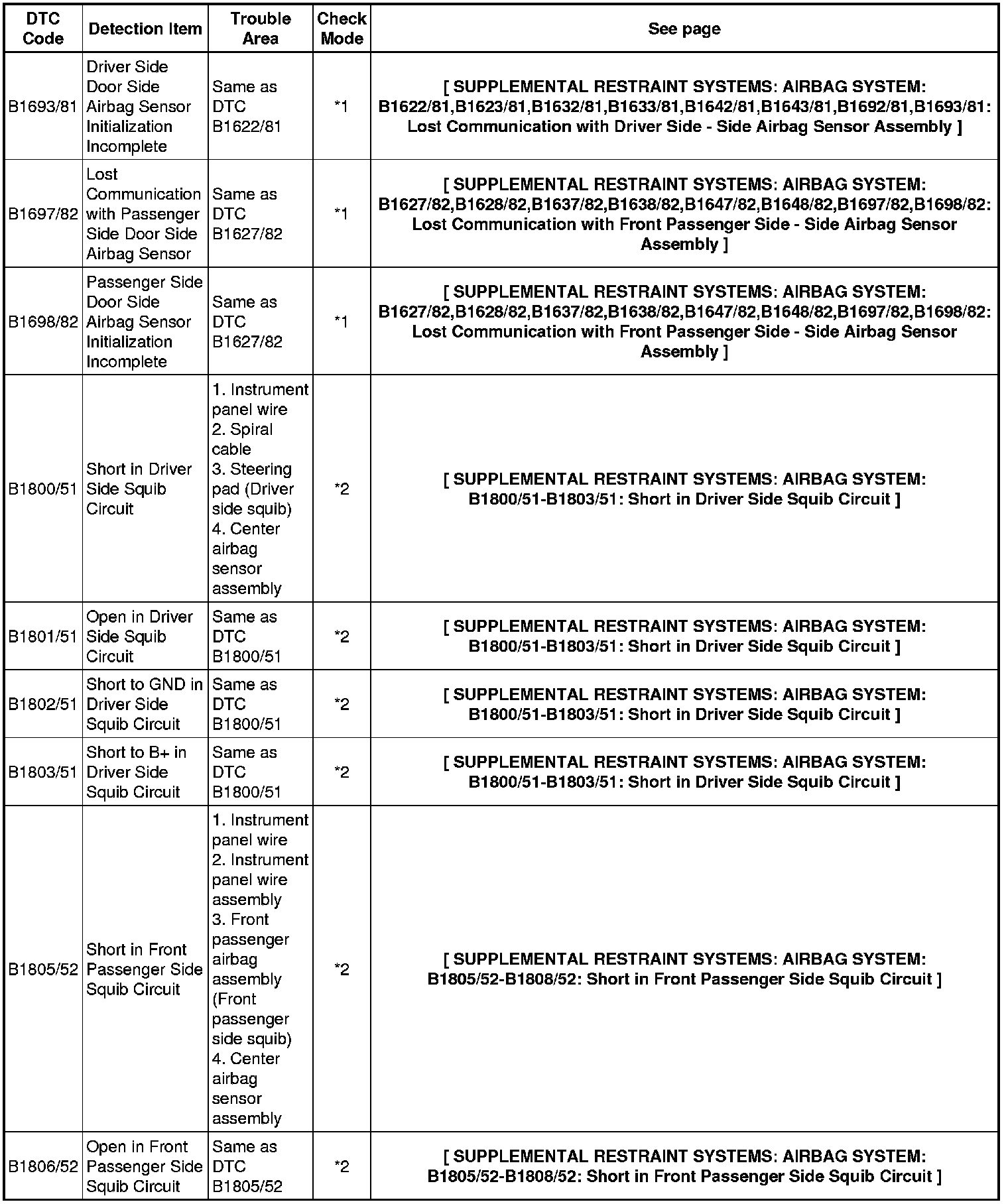 * If a code is not listed on the display chart, the center airbag sensor assembly may have failed.