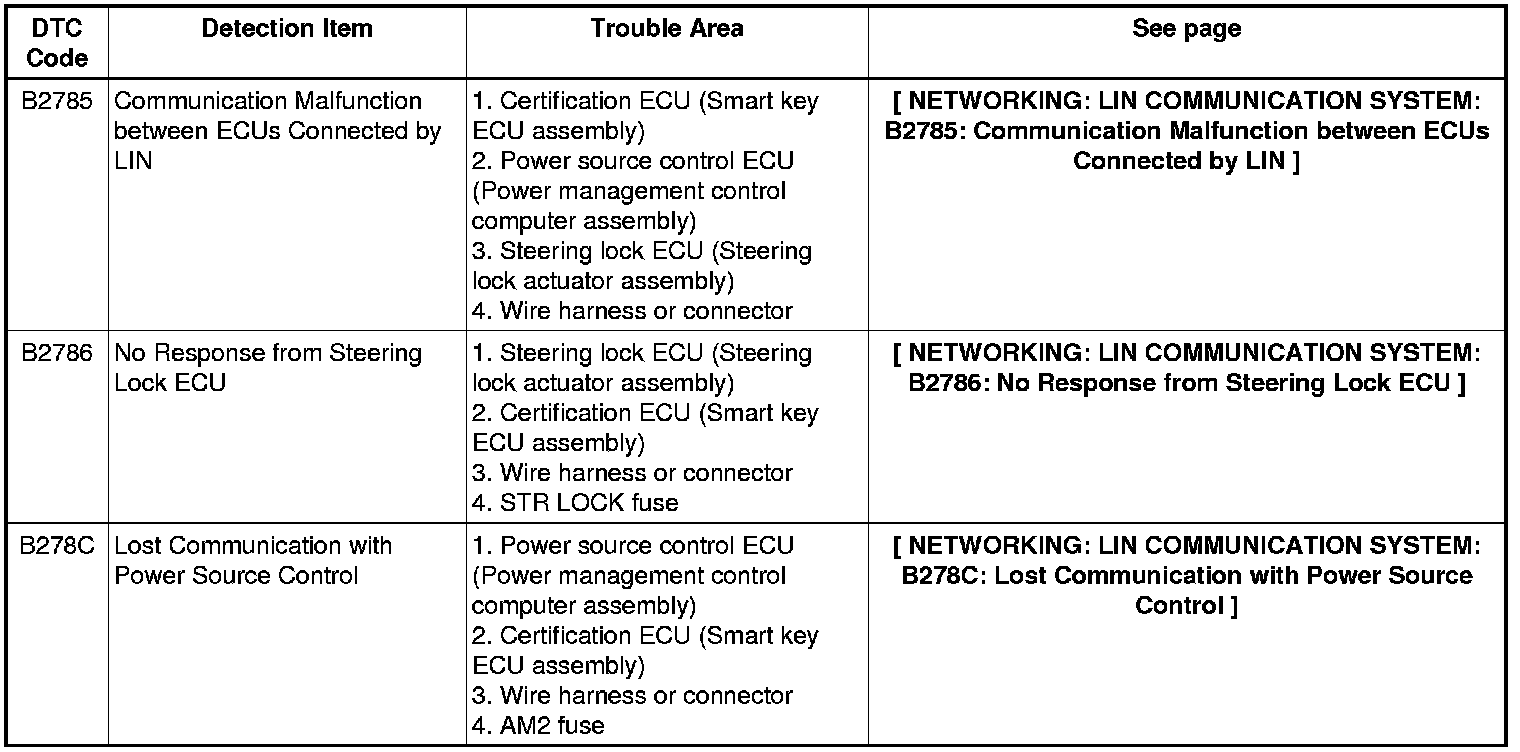 NETWORKING: LIN COMMUNICATION SYSTEM: DIAGNOSTIC TROUBLE CODE CHART