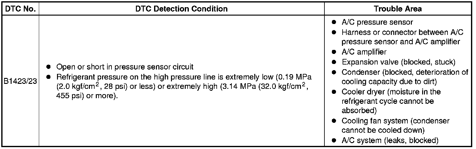 HEATING / AIR CONDITIONING: AIR CONDITIONING SYSTEM (for Automatic Air Conditioning System): B1423/23: Pressure Sensor Circuit