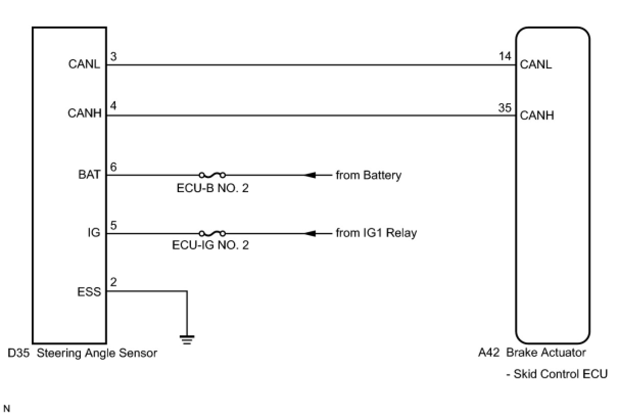 The steering angle sensor signal is sent to the skid control ECU via the CAN communication system. When there is a malfunction in the CAN communication system, it will be detected by the steering angle sensor zero point malfunction diagnostic function.