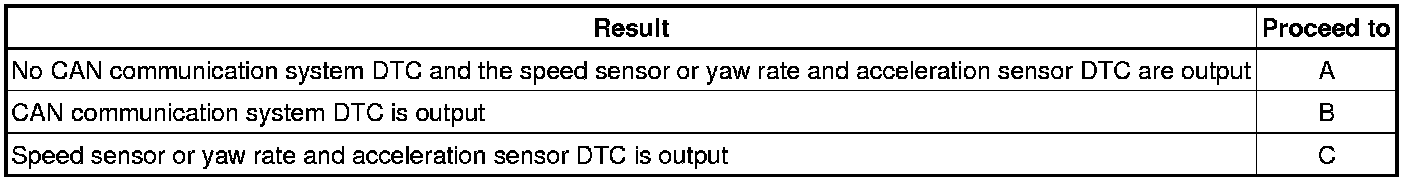 * If the speed sensor and the yaw rate and acceleration sensor DTCs are output simultaneously, repair the sensors and inspect the steering angle sensor.