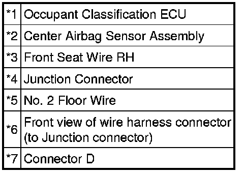 Check that the connectors are properly connected to the center airbag sensor assembly and occupant classification ECU. Also check that the connectors that link the front seat wire RH, junction connector and No. 2 floor wire are properly connected.