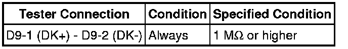 Never connect the tester to the driver side knee airbag assembly (driver side knee airbag squib) for measurement, as this may lead to a serious injury due to airbag deployment.