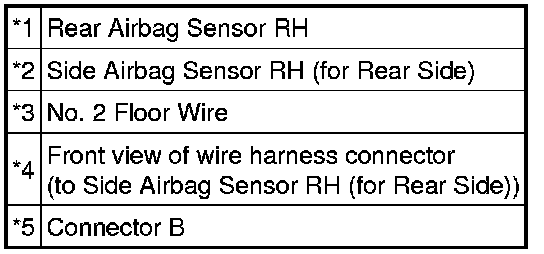 (c) Check that the connectors are properly connected to the side airbag sensor RH (for rear side), rear airbag sensor RH and side airbag sensor RH (for front side). Also check that the connectors that link the No. 2 floor wire and front door wire RH are properly connected.