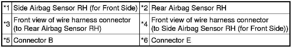 (c) Check that the connectors are properly connected to the rear airbag sensor RH and side airbag sensor RH (for front side). Also check that the connectors that link the No. 2 floor wire and front door wire RH are properly connected.