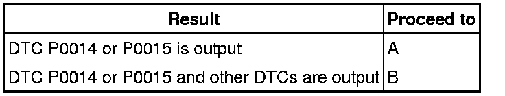If any DTCs other than P0014 or P0015 are output, troubleshoot those DTCs first.