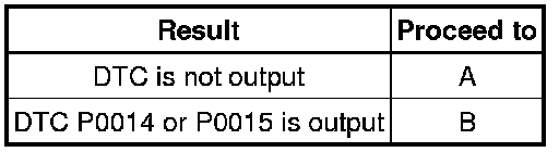 3. CHECK WHETHER DTC OUTPUT RECURS (DTC P0014 OR P0015)