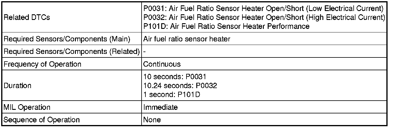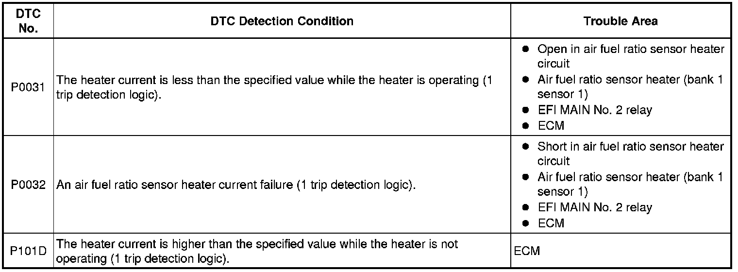- Although the DTC titles say oxygen sensor, these DTCs relate to the air fuel ratio sensor.