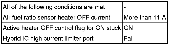 When the current in the air fuel ratio sensor heater is outside the normal operating range, the ECM interprets this as a malfunction in the sensor heater and stores a DTC.