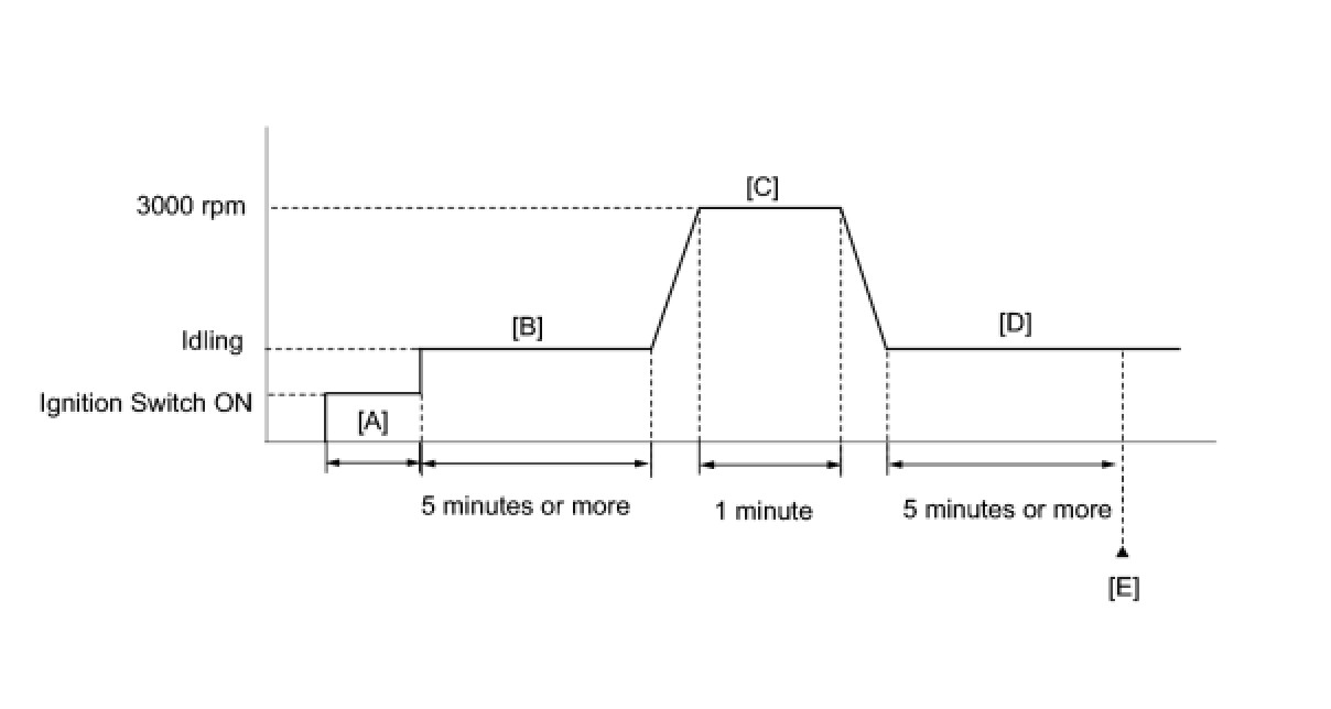 6. Start the engine and idle it for 5 minutes or more [B].