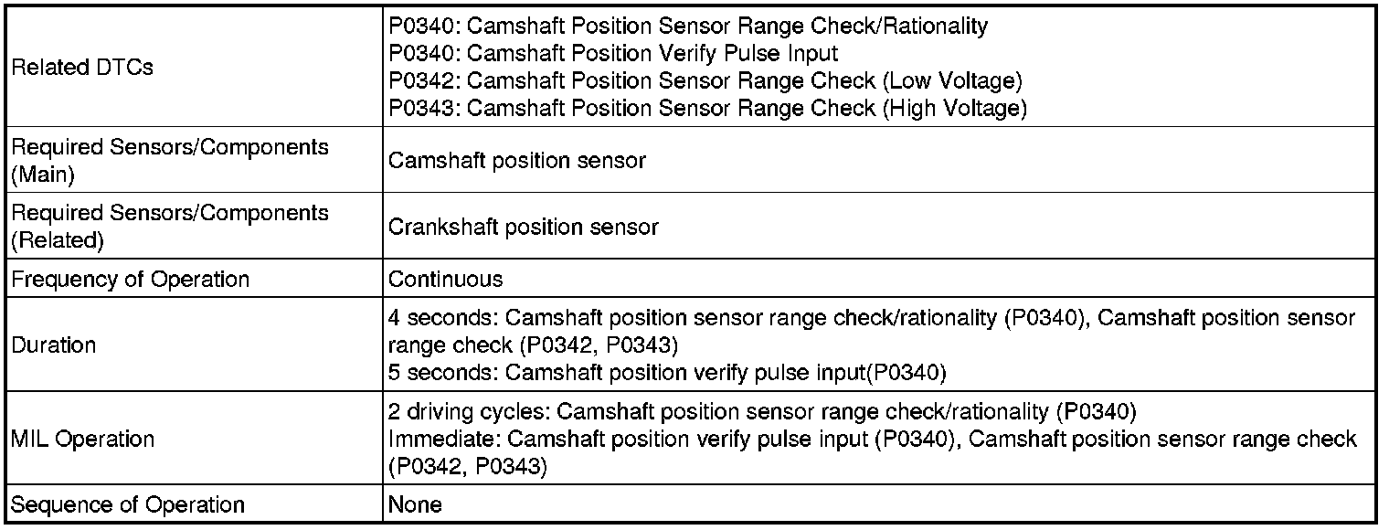 P0342, P0343: Camshaft Position Sensor Range Check: