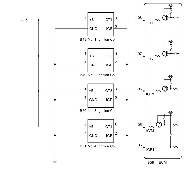 1AR-FE ENGINE CONTROL: SFI SYSTEM: P0351-P0354: Ignition Coil "A" Primary / Secondary Circuit