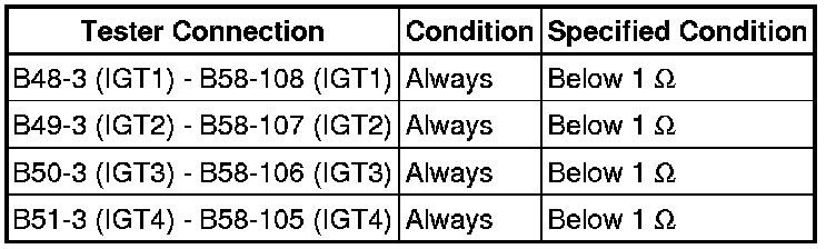 * While cranking or idling the engine, check the waveform between terminals IGT (1 to 4) and E1, and IGF1 and E1 of the ECM connector.