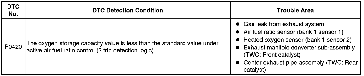 1AR-FE ENGINE CONTROL: SFI SYSTEM: P0420: Catalyst System Efficiency Below Threshold (Bank 1)