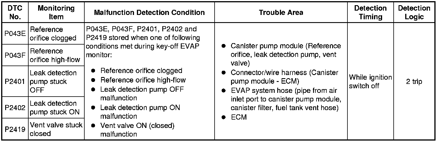 The description can be found in EVAP (Evaporative Emission) System Component Tests and General Diagnostics.