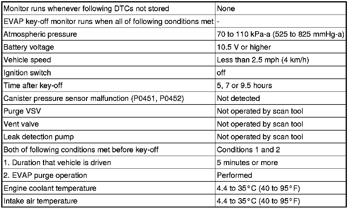 The 2 monitors, Key-Off and Purge Flow, are used to detect malfunctions relating to DTC P0441. The Key-Off monitor is initiated by the ECM internal timer, known as the soak timer, 5 hours* after the ignition switch is turned off. The purge flow monitor runs while the engine is running.