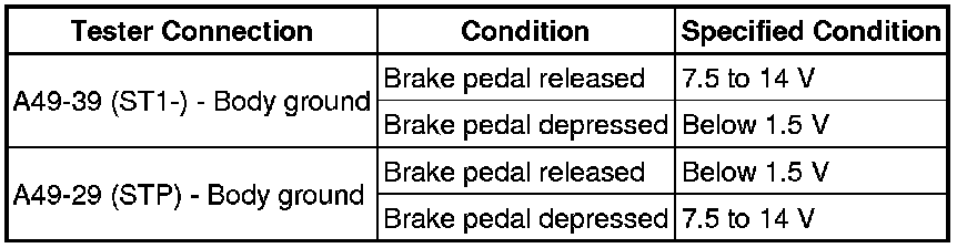 (5) Check the Stop Light Switch (STP) signal when the brake pedal is depressed and released.