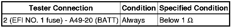 NG -- REPAIR OR REPLACE HARNESS OR CONNECTOR (EFI NO. 1 FUSE - ECM)