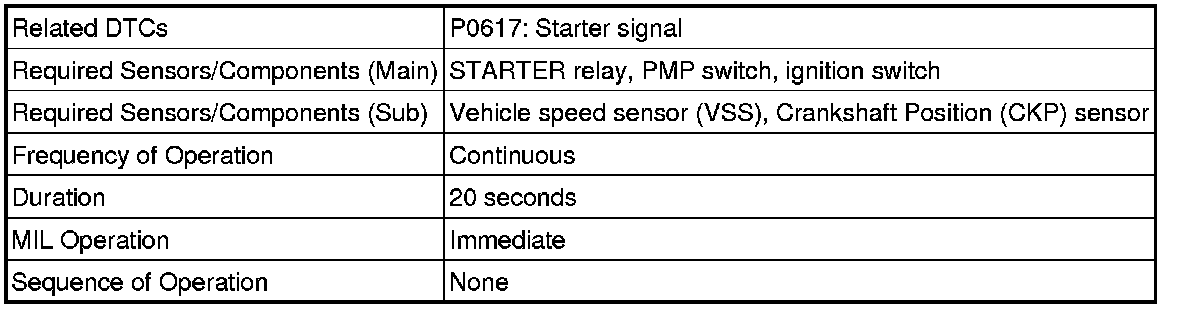 If the TCM detects the Starter Control (STA) signal while the vehicle is being driven, it determines that there is a malfunction in the STA circuit. The TCM then illuminates the MIL and sets the DTC.