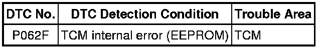 U760E AUTOMATIC TRANSMISSION / TRANSAXLE: AUTOMATIC TRANSAXLE SYSTEM: P062F: Internal Control Module EEPROM Error