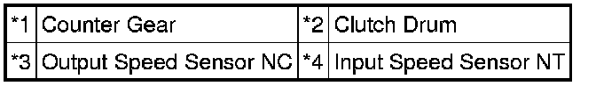 The NT terminal of the TCM detects a revolution signal from the speed sensor (NT) (input RPM). The TCM calculates gear shifts comparing the speed sensor (NT) with the speed sensor (NC).