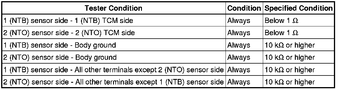 The NT terminal of the TCM detects a revolution signal from the speed sensor (NT) (input RPM). The TCM calculates gear shifts comparing the speed sensor (NT) with the speed sensor (NC).