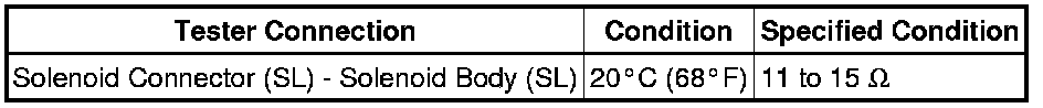 3. INSPECT SHIFT SOLENOID VALVE SL (RESISTANCE)