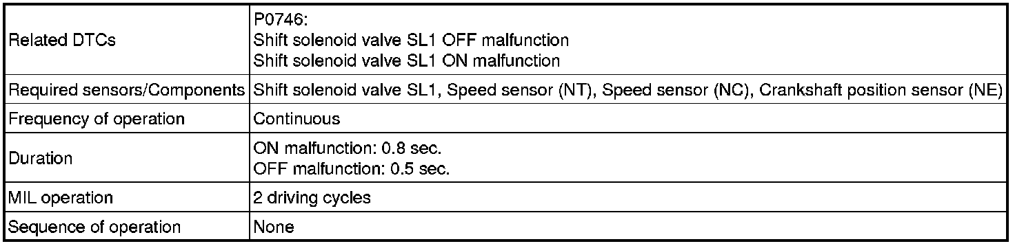 U660F AUTOMATIC TRANSMISSION / TRANSAXLE: AUTOMATIC TRANSAXLE SYSTEM: P0746: Pressure Control Solenoid "A" Performance (Shift Solenoid Valve SL1)