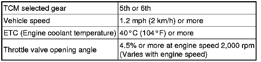 Because the torque converter clutch has not engaged, it may be difficult to obtain the speeds specified in 4th, 5th, and 6th gear, however a difference of speed should still be evident following each gear change.