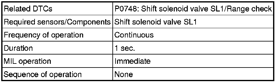 U660F AUTOMATIC TRANSMISSION / TRANSAXLE: AUTOMATIC TRANSAXLE SYSTEM: P0748: Pressure Control Solenoid "A" Electrical (Shift Solenoid Valve SL1)