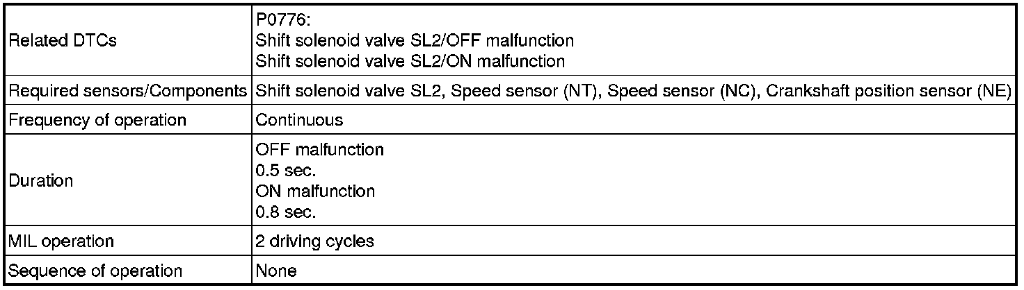 U760E AUTOMATIC TRANSMISSION / TRANSAXLE: AUTOMATIC TRANSAXLE SYSTEM: P0776: Pressure Control Solenoid "B" Performance (Shift Solenoid Valve SL2)