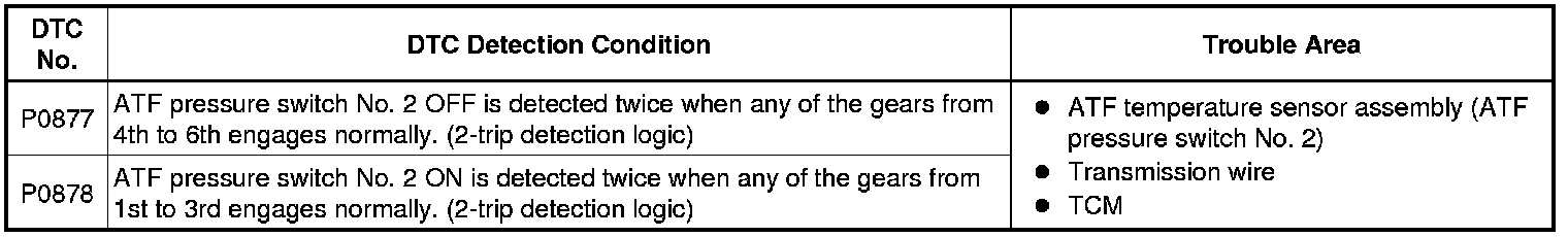 U660F AUTOMATIC TRANSMISSION / TRANSAXLE: AUTOMATIC TRANSAXLE SYSTEM: P0877,P0878: Transmission Fluid Pressure Sensor / Switch "D" Circuit Low