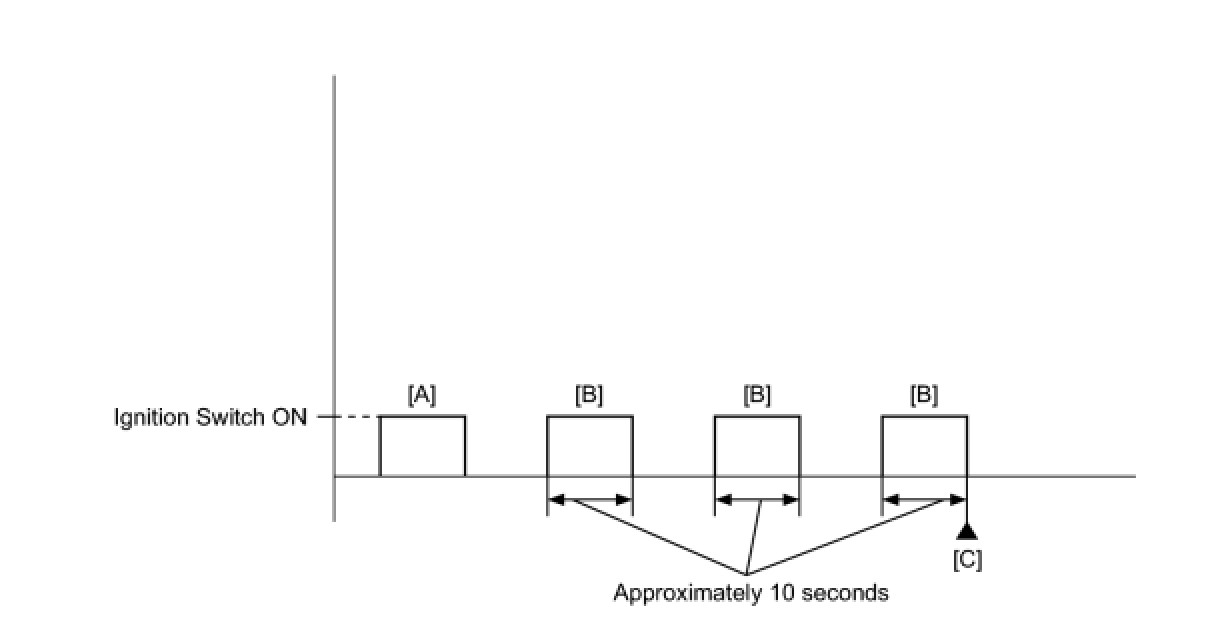 9. Turn the ignition switch to ON, wait approximately 10 seconds, and then turn the ignition switch off. Repeat this procedure 3 times [B].