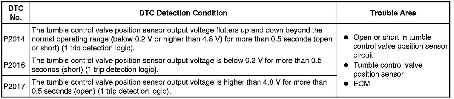 When the output voltage of the IAC1 terminal deviates from the standard range, the ECM determines that a malfunction has occurred in the position sensor and stores a DTC.