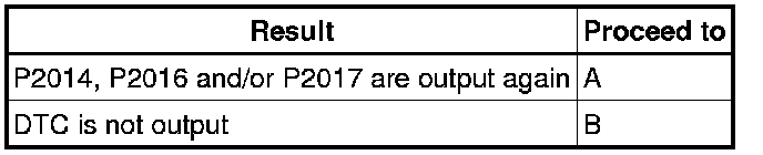 6. CHECK WHETHER DTC OUTPUT RECURS (DTC P2014, P2016 AND/OR P2017 ARE OUTPUT AGAIN)