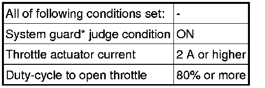 The ECM determines that there is a malfunction in the ETCS when the throttle valve remains at a fixed angle despite a high drive current from the ECM. The ECM illuminates the MIL and stores a DTC.
