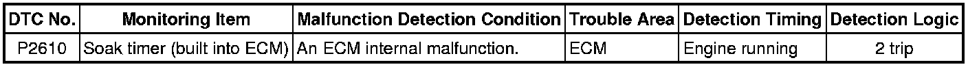 1AR-FE ENGINE CONTROL: SFI SYSTEM: P2610: ECM / PCM Internal Engine Off Timer Performance