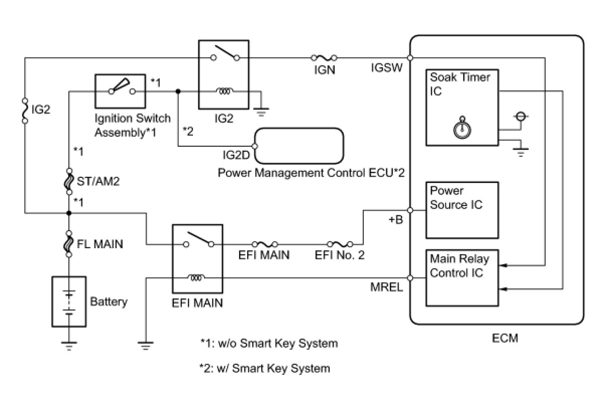 The soak timer operates after the ignition switch is turned off. When a certain amount of time has elapsed after turning the ignition switch off, the soak timer activates the ECM to perform malfunction checks which can only be performed after the engine is stopped. The soak timer is built into the ECM.