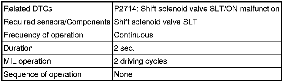 U660E AUTOMATIC TRANSMISSION / TRANSAXLE: AUTOMATIC TRANSAXLE SYSTEM: P2714: Pressure Control Solenoid "D" Performance (Shift Solenoid Valve SLT)