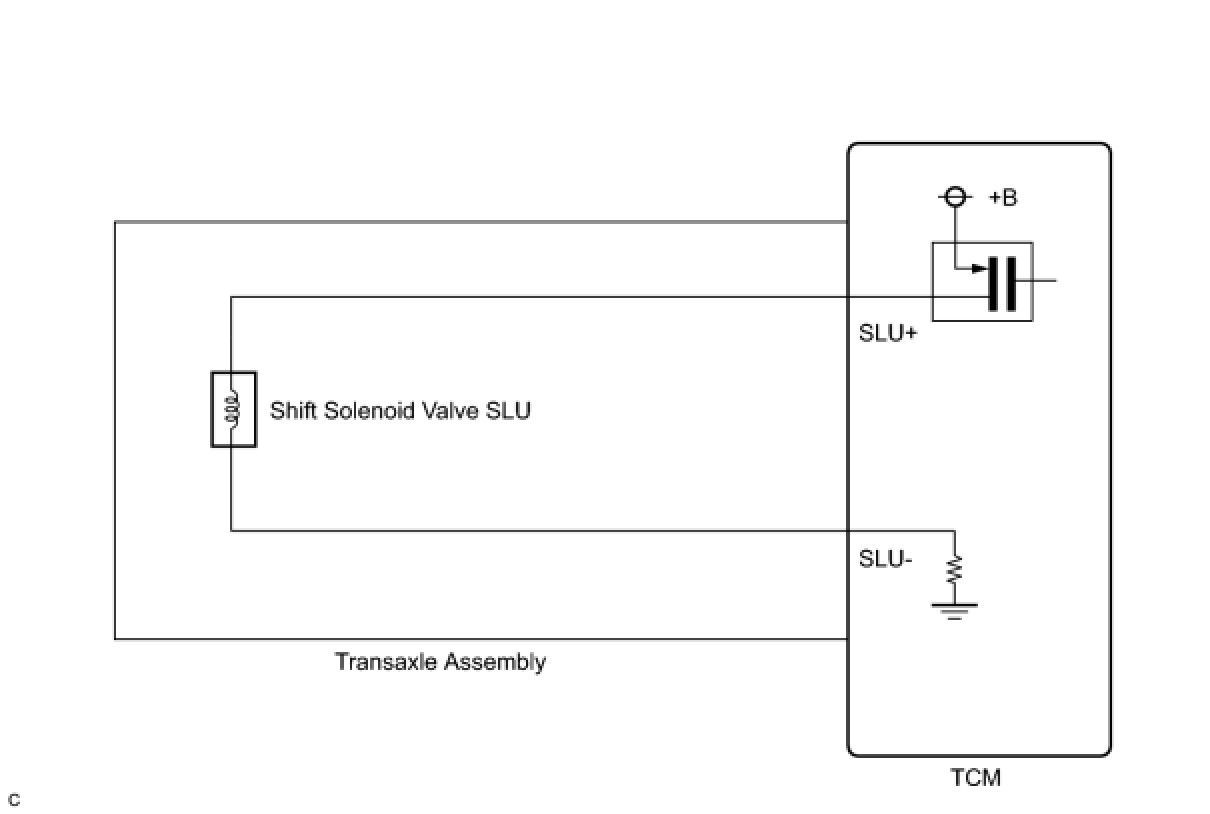 When an open or short in a shift solenoid valve (SLU) circuit is detected, the TCM determines there is a malfunction. The TCM will turn on the MIL and store this DTC.
