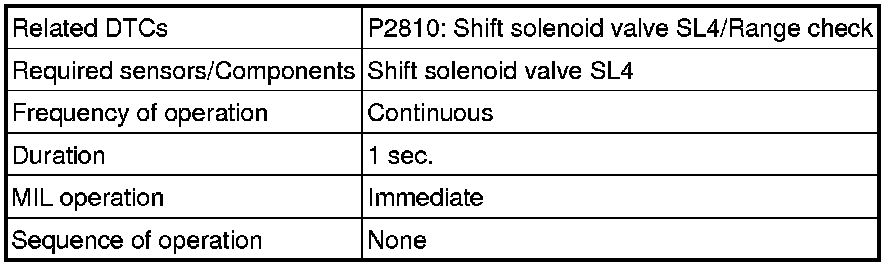 U760E AUTOMATIC TRANSMISSION / TRANSAXLE: AUTOMATIC TRANSAXLE SYSTEM: P2810: Pressure Control Solenoid "G" Electrical (Shift Solenoid Valve SL4)