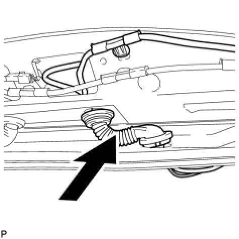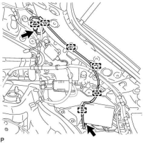 (b) Pass the No. 3 antenna cord sub-assembly with No. 2 washer hose through the vehicle body as shown in the illustration.