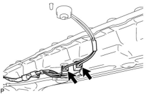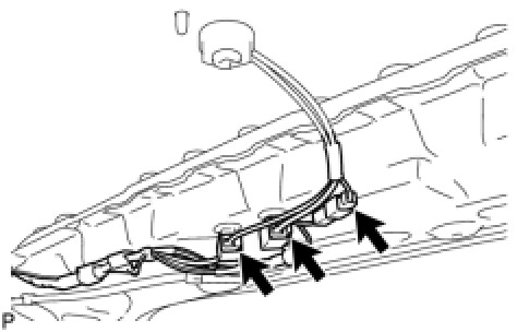 (a) Engage the 6 clamps to install the satellite radio antenna cord.
