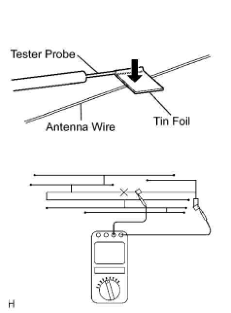 Check for continuity at the center of each antenna wire as shown in the illustration.