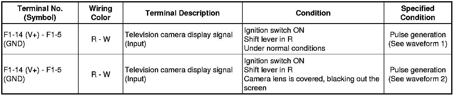 A waterproof connector is used for the television camera assembly. Therefore, inspect the waveform at the accessory meter assembly with the connector connected.