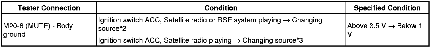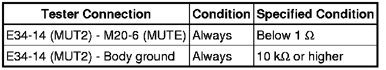 The MUTE signal is sent to reduce noise and a popping sound generated when switching the mode etc. If there is an open in the circuit, noise can be heard from the speakers when changing the sound source. If there is a short in the circuit, even though the navigation receiver assembly is functioning normally, no sound or only an extremely faint sound can be heard.